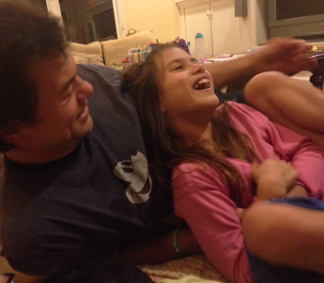 My girl cracking herself up with scripts last night