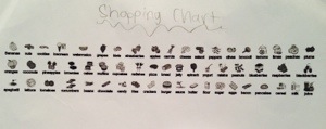 A “shopping chart” that Brooke recently wrote using Pixwriter. Looks like we’d better get to the market.
